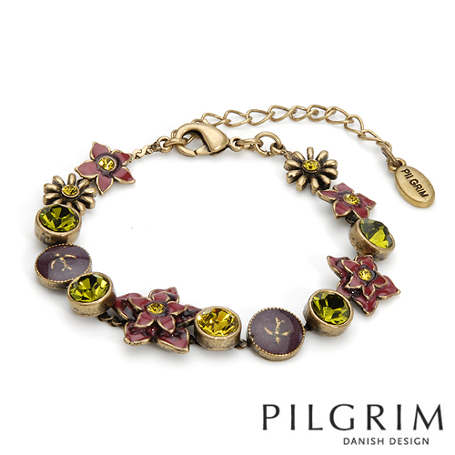 Dazzling PILGRIM bracelet with genuine crystals made of brown base metal and two tone enamel. Gift box included.