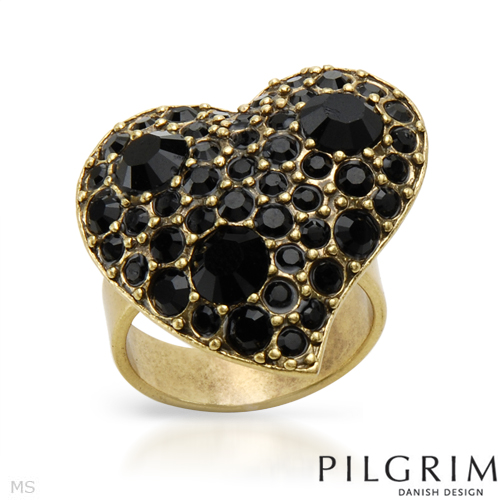Stunning Pilgrim heart shaped ring with genuine crystals well made in yellow base metal.